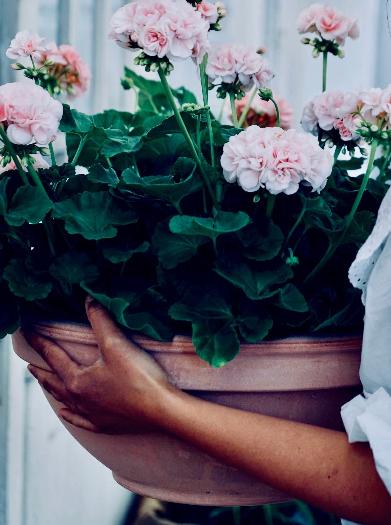 Pelargonium ‘Dronning Ingrid’ har lys rosa blomster, vakkert lys grønt bladverk og blomstrer rikt. Plasser den gjerne i vinduskarmen eller i en potte ute. Kan overvintres inne på et kjølig og lyst sted, men husk å vanne den litt gjennom vinteren!